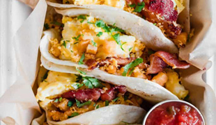 Eggs scramble | Bacon| potatoes | Latin Dresing